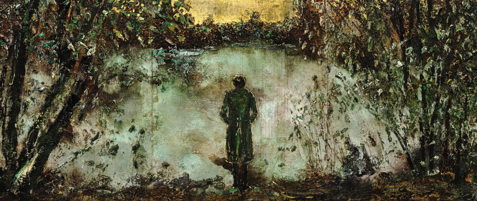 Anselm Kiefer : Becoming the Sea Anselm Kiefer, allemand, né en 1945 ; Anselm fuit hic (Anselm était ici) (détail), 2024 ; émulsion, huile, acrylique, gomme laque, feuille d'or et sédiments d'électrolyse sur toile ; 9,50 m x 8,40 m ; avec l'aimable autorisation de l'artiste ; © Anselm Kiefer, photo : Nina Slavcheva